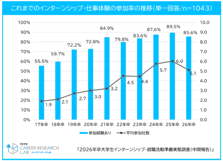 参考:2026年卒大学生インターンシップ・就職活動準備実態調査(中間総括)